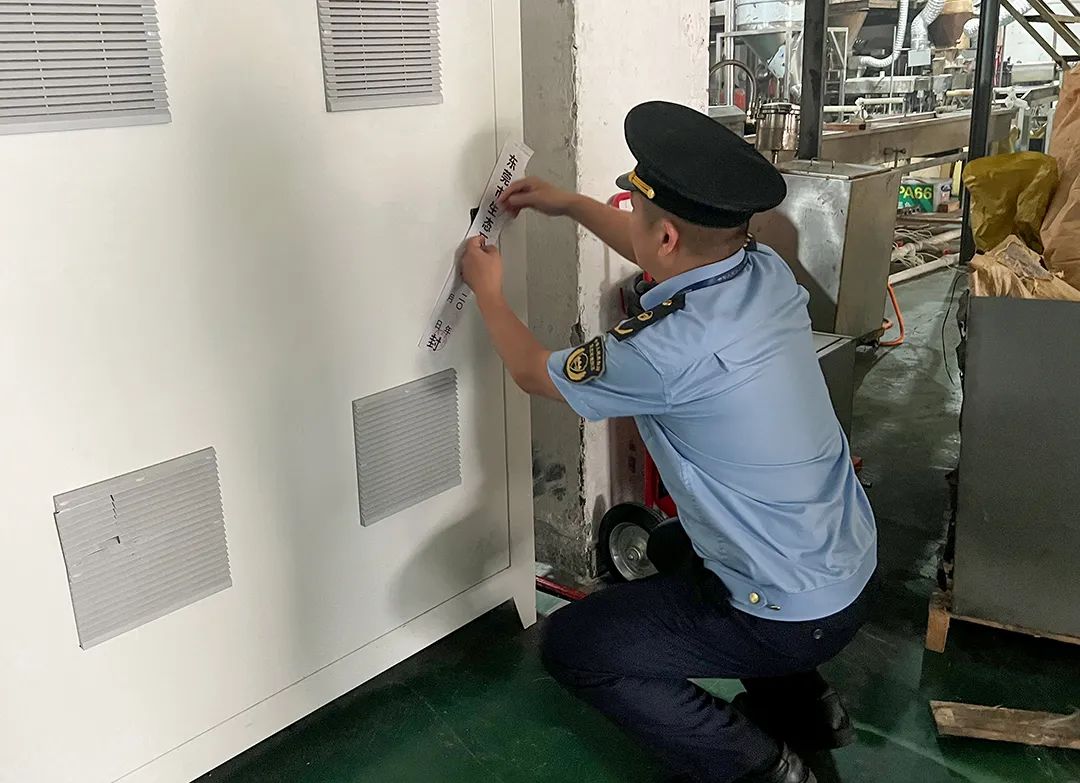掌握以上情況后,執(zhí)法人員對現(xiàn)場進行錄像及拍照取證,制作雙筆錄,同時依法查封該公司,并現(xiàn)場要求第三方檢測公司對該公司抽粒成型工序的廢氣排放口進行取樣檢測。