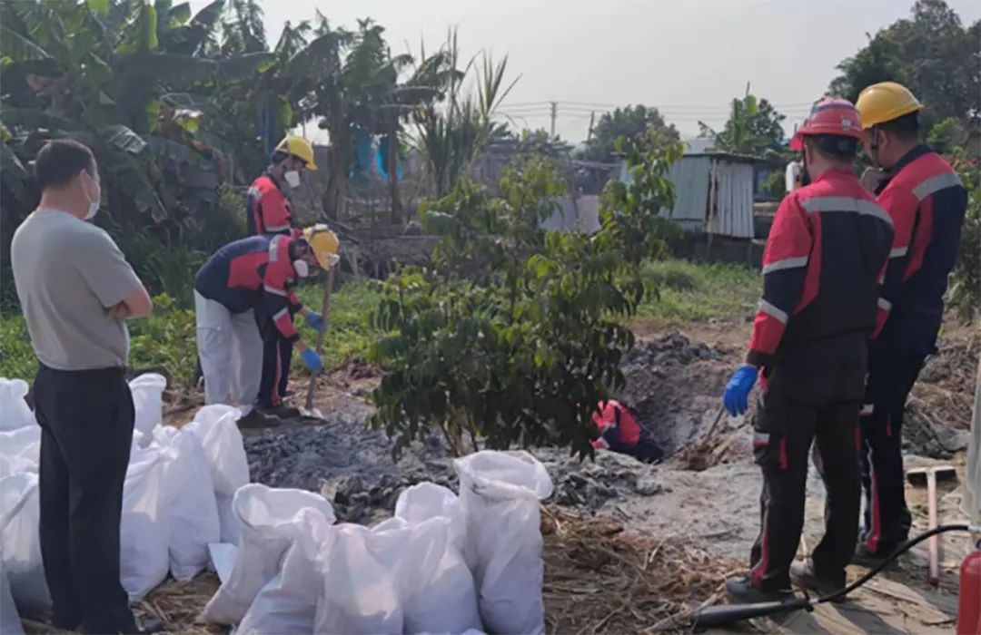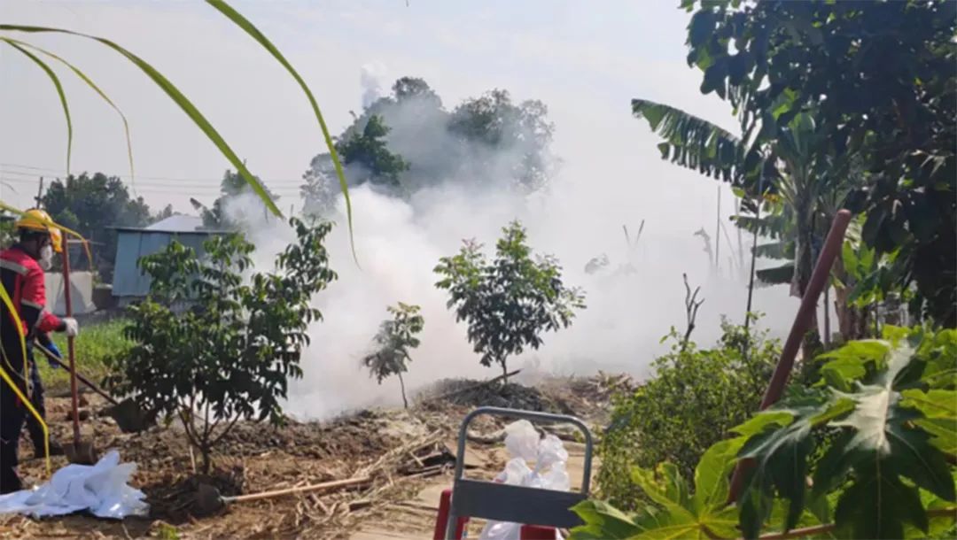 今年2月19日,麻涌鎮(zhèn)大盛村的村民發(fā)現(xiàn)附近香蕉地冒出大量白煙。接到報(bào)警后,麻涌生態(tài)環(huán)境分局、公安分局聯(lián)合行動(dòng),迅速控制案發(fā)現(xiàn)場。