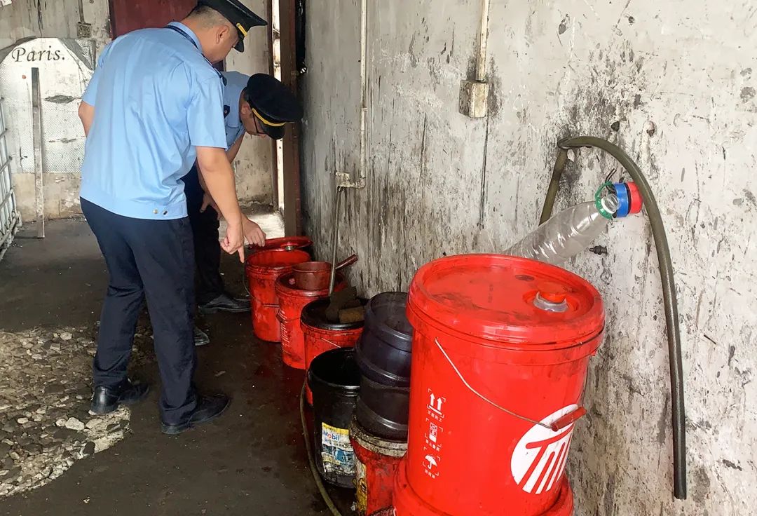 經(jīng)稱重,3個含廢液的金屬儲罐重量達(dá)540公斤。執(zhí)法人員立即委托第三方檢測公司,對金屬儲罐的廢液進(jìn)行取樣鑒定,并對該工場涉嫌無證從事收集、貯存危險廢物的行為制作了雙筆錄。