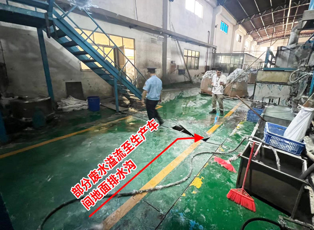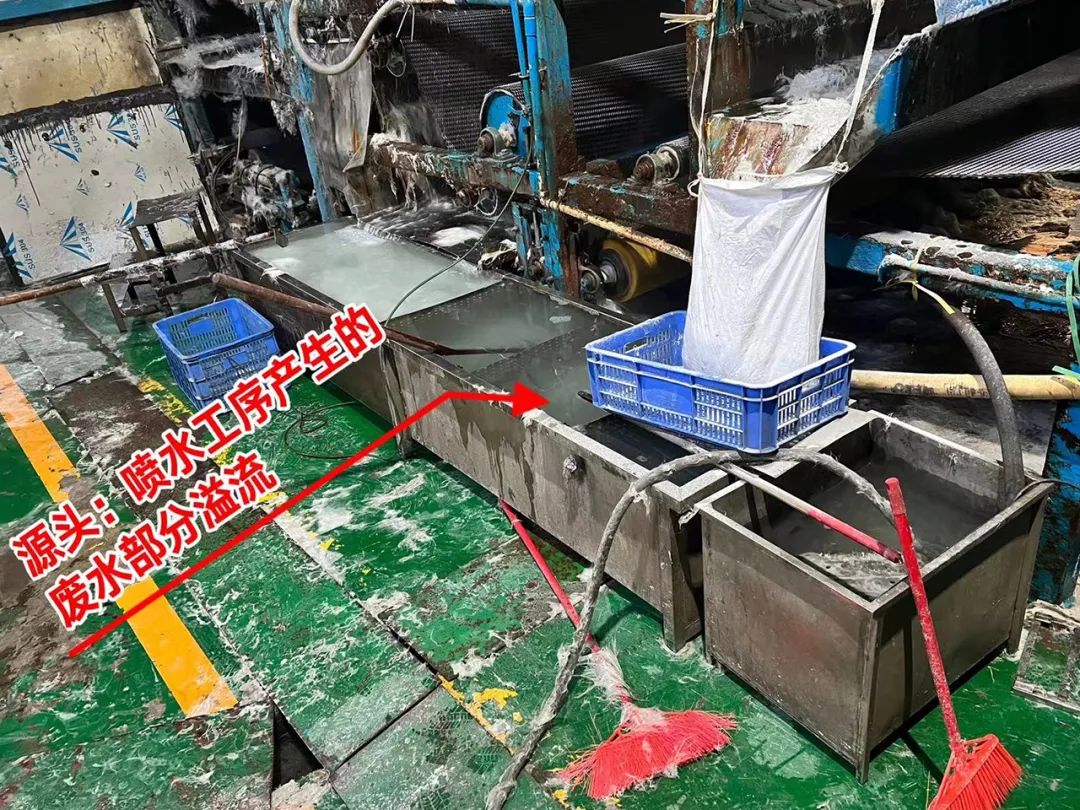 執(zhí)法人員現(xiàn)場(chǎng)委托第三方檢測(cè)人員對(duì)該公司生產(chǎn)車間地面排水溝等4處地點(diǎn)采水樣待檢,采樣后將該公司生產(chǎn)車間地面排水溝連接的車間外污水井排水口封堵。執(zhí)法人員還發(fā)現(xiàn)部分生產(chǎn)過程中產(chǎn)生的邊氈露天堆放,幸好現(xiàn)場(chǎng)未發(fā)生流失、滲漏、揚(yáng)撒情況。經(jīng)執(zhí)法人員現(xiàn)場(chǎng)教育,該公司按要求設(shè)置專用固廢貯存?zhèn)}庫和相關(guān)標(biāo)識(shí),固廢貯存?zhèn)}落實(shí)“三防”措施,一般工業(yè)固體廢物露天堆放的情況已改正。
