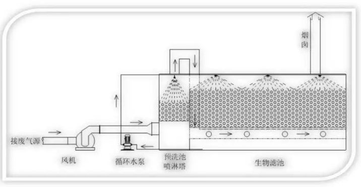 1、生物過濾工藝核心單元為預(yù)洗滌和生物濾床兩部分,預(yù)洗滌通過循環(huán)泵,以水為循環(huán)介質(zhì),噴淋填料層,吸收氣體中的可溶性成分,同時對氣體起加濕作用。生物濾床是生物過濾的主體,微生物在生物填料表面形成生物膜,對氣體中的污染物成分進(jìn)行吸附降解,生物濾床上部裝有噴淋頭,對床層間歇式噴淋,給生物濾床提供生物所必需的水分,同時沖洗微生物代謝產(chǎn)生的硫酸鹽、硝酸鹽,以及生物膜老化產(chǎn)生的殘骸,保證生物膜的活性。設(shè)備單機(jī)和聯(lián)機(jī)調(diào)試正常后,就開始生物掛膜和菌種培養(yǎng)。